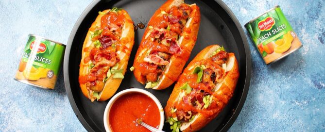 Hot Dogs with Crispy Bacon, Spicy Peach BBQ [...]