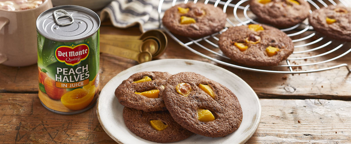 Biscuits aux éclats de chocolat, à la pêche et à la pâte d’amande