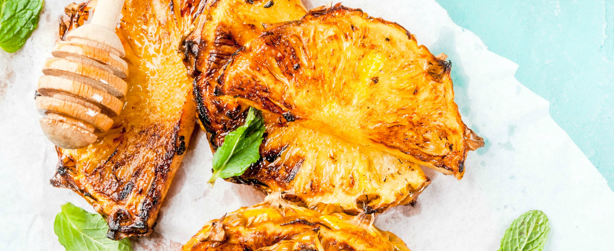 Hot Dogs with Grilled Mango, BBQ Sauce, Lime Pickled Onion, Yellow Mustard